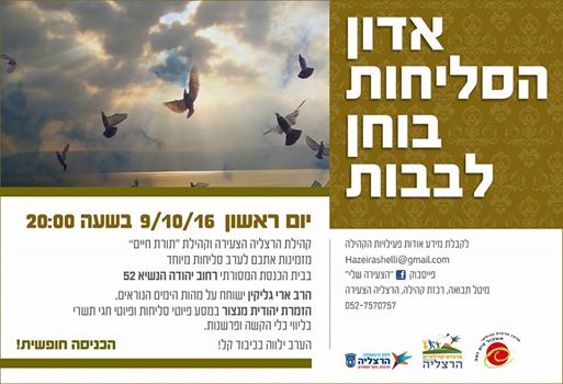 ביום ראשון אחרון קיימנו בקהילה אירוע סליחות מרגש בליווי הזמרת יהודית מנצור. יהודית עברה על מיטב הפיוטים וסיפורים מהלב. הפעילות נערכה בשיתוף עם השכונה ועריית הרצליה.