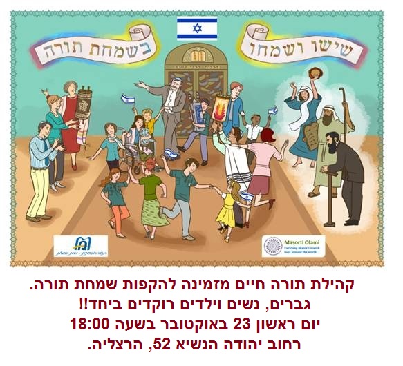 יום ראשון 23 באוקטובר: תפילת ערבית והקפות: שעה 18:00